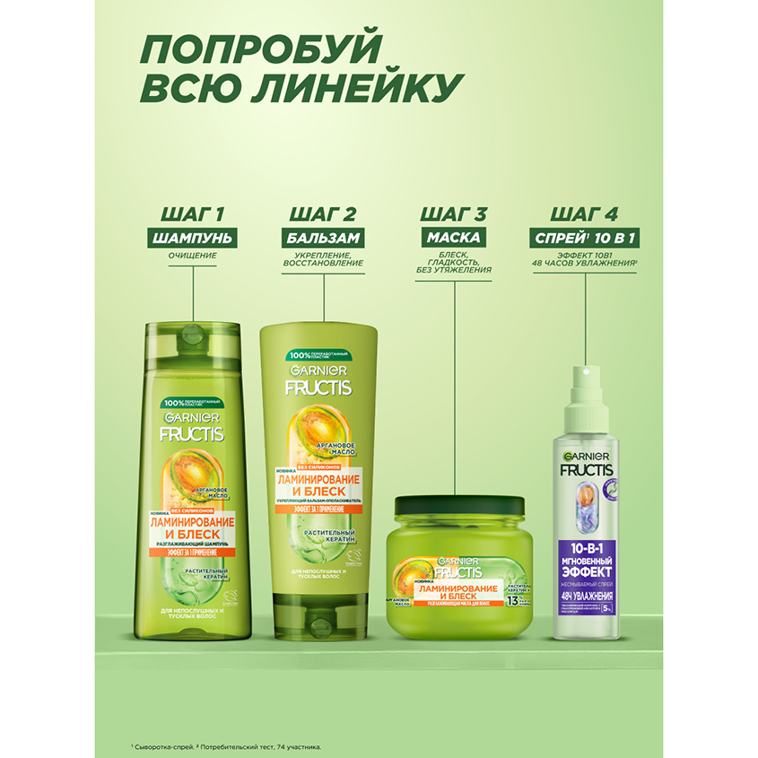 Для оптимального результата дополни свою рутину ухода средствами для непослушных волос из коллекции Fructis Ламинирование и Блеск: