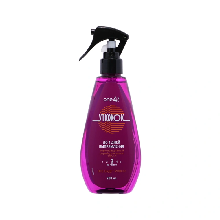 Спрей one4me "Утюжок" подарит эффект гладкости до 4 дней и поможет защитить волосы от высоких температур при выпрямлении щипцами или феном. Все будет ровно!