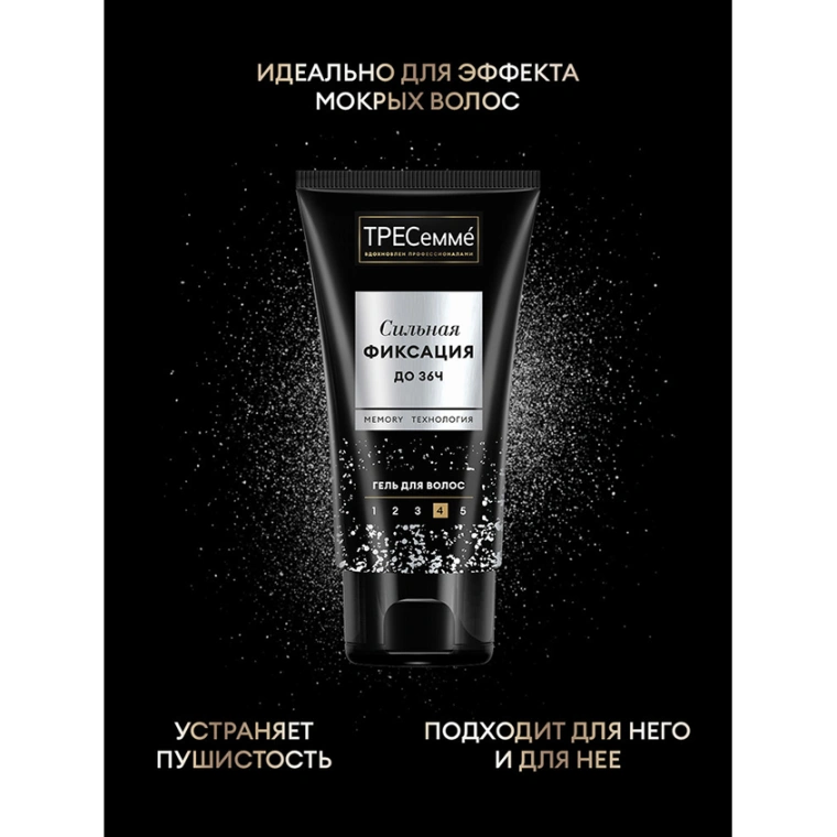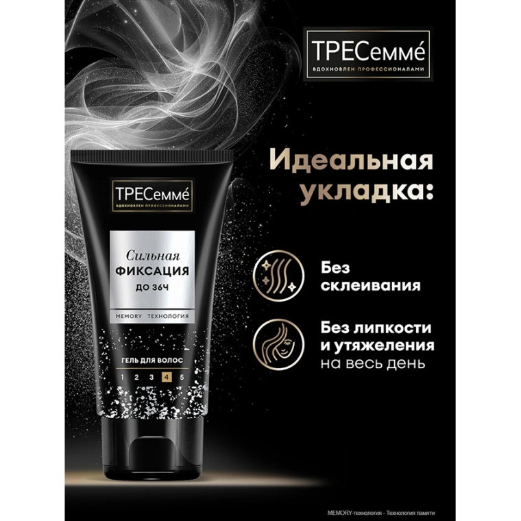 "Гель для укладки волос сильной фиксации ТРЕСеммé - косметический продукт - новинка, который несомненно станет незаменимым помощником для женщин и девушек в процессе формирования выразительных локонов, а также для мужчин в создании стильных причесок.