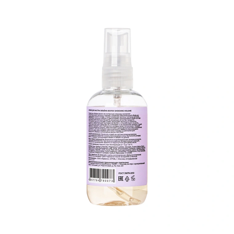 Спрей идеально использовать как стайлинг, для укладки волос всех типов, в том числе подходит для укладки на брашинг для волос. Спрей для укладки волос придаёт прическе желаемую форму, обеспечивая сухую фиксацию без склеивания и липкости. Для достижения максимального эффекта, рекомендуем дополнить ваш уход скрабом для кожи головы и шампунем для воздушного объема и уплотнения волос KELTAIN