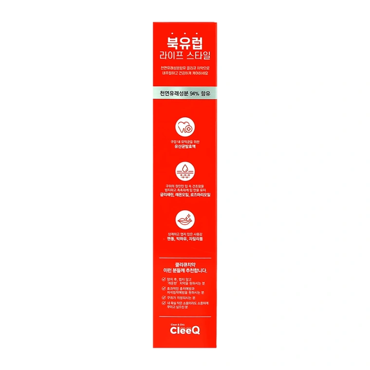 Зубная паста " CLEEQ " на 94% состоит из натуральных ингредиентов. Формула с содержанием молочнокислотных бактерий, предотвращает образования вредных клеток в полости рта, борется с кариесом, укрепляет зубную эмаль, поддерживает естественное здоровье десен и деликатно удаляет зубной налёт. Приятный фруктовый аромат масел корицы, лимона и мяты прекрасно освежает дыхание и надолго оставляет ощущение чистоты и свежести полости рта, а бодрящий вкус заряжает энергией!