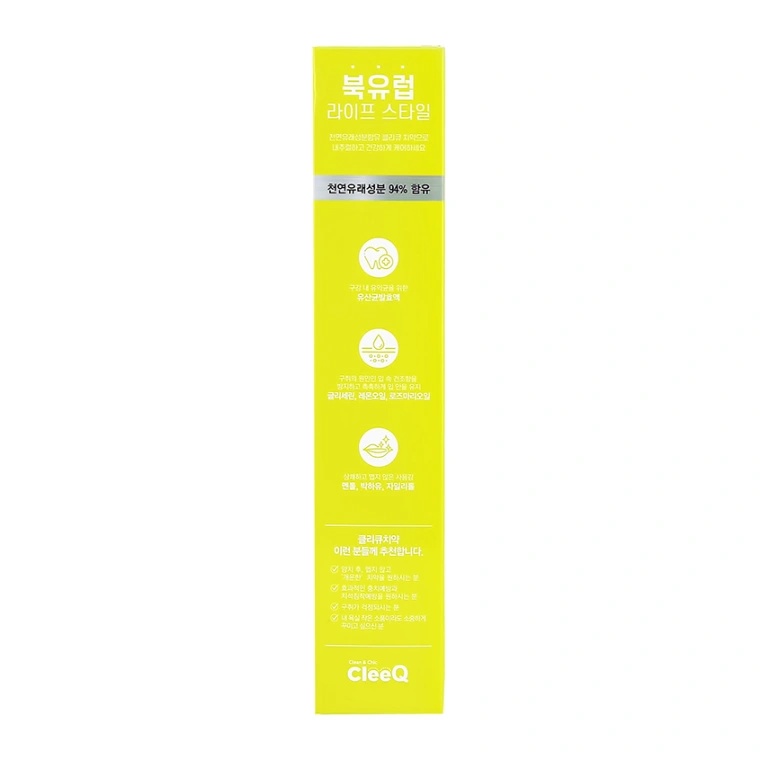 Зубная паста " CLEEQ " на 94% состоит из натуральных ингредиентов. Формула с содержанием молочнокислотных бактерий, предотвращает образования вредных клеток в полости рта, борется с кариесом, укрепляет зубную эмаль, поддерживает естественное здоровье десен и деликатно удаляет зубной налёт. Приятный фруктовый аромат масел корицы, лимона и мяты прекрасно освежает дыхание и надолго оставляет ощущение чистоты и свежести полости рта, а бодрящий вкус заряжает энергией!