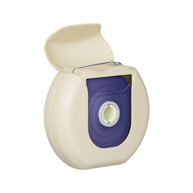 Фиолетовая нить с восковым покрытием мягко и тщательно очищает межзубные промежутки.