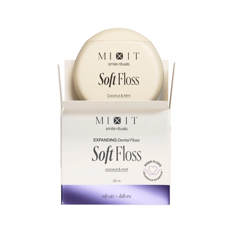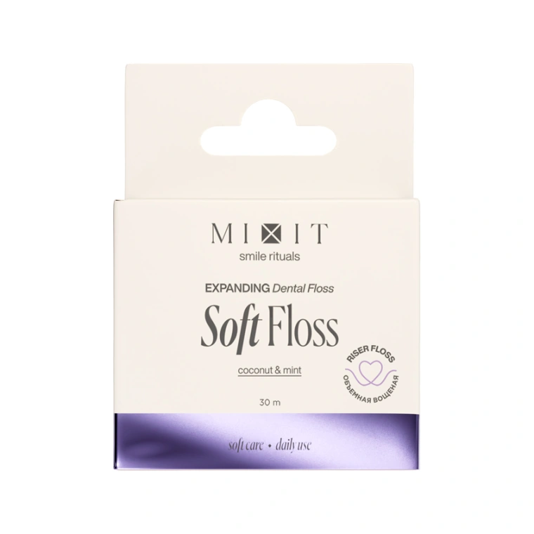 Мягкая восщёная нить, которая при контакте со слюной распушается, мягко увеличивается в объёме и очищает межзубные промежутки без травм и боли