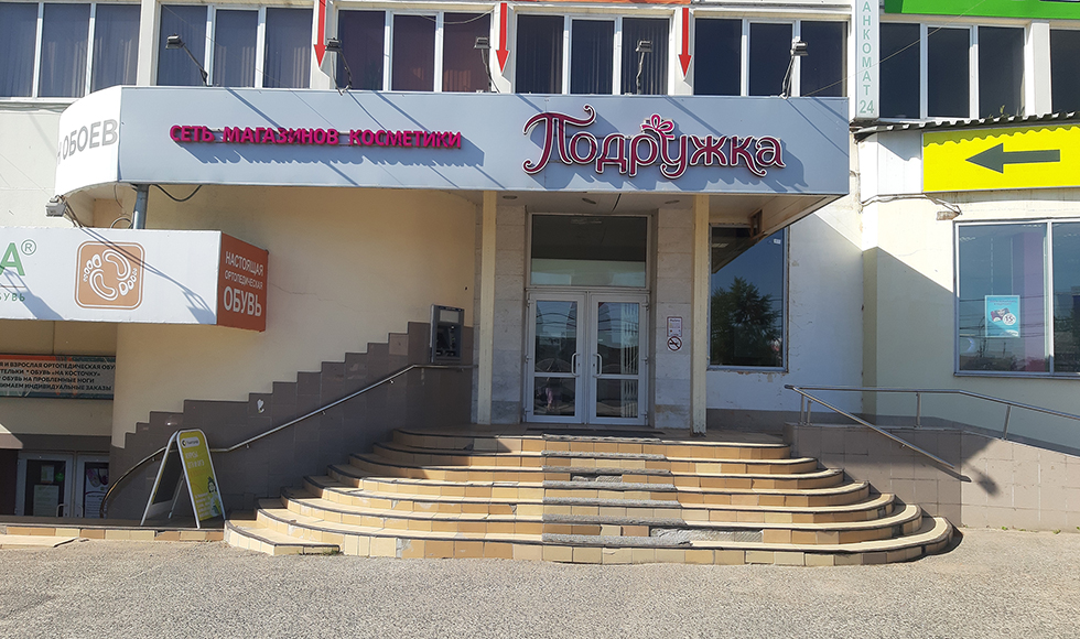 Казанский вокзал. Сесть в электропоезд, следующий до станции «Голутвин» и проследовать до конечной станции. Выйти из поезда и проследовать в сторону площади Восстания. Пересечь улицу Октябрьской революции. На противоположной стороне дороги находится здание ТЦ «Максимум». Магазин «Подружка» расположен в здании ТЦ «Максимум», рядом с ТЦ РИО.